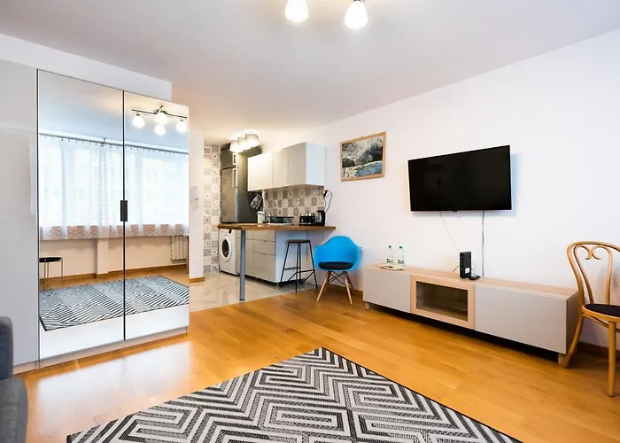 The accommodation provides guests with a seating area, as well as such modern comforts as a washing machine. Plac Grzybowski Blue Sky Studio By Bookinghost features a bathroom with hairdryers, free toiletries, and bath sheets. You'll also come across a separate toilet and a shower.